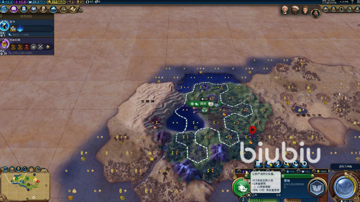 第二部分要说些地形特殊的词条,要知道玩家是可以选择不同国家来发展的,而这些国家的设计来源就是现实世界,地形也是基本上相似的。1.比如说靠近海洋的国家,可以选择海洋之神,渔船可以+1生产力。这个在前期肯定效果不大,但是后期建立了港口就非常好用了。2.靠近林地的国家就可以选择狩猎女生,通过营地产生的食物来增加生产力。3.靠近沃土的国家就选择节庆女神,农耕地区发展种植园就可以提供文化值增长。4.在草原边上的国家选择天空之神,这样大量的牧场可以增加文化值。