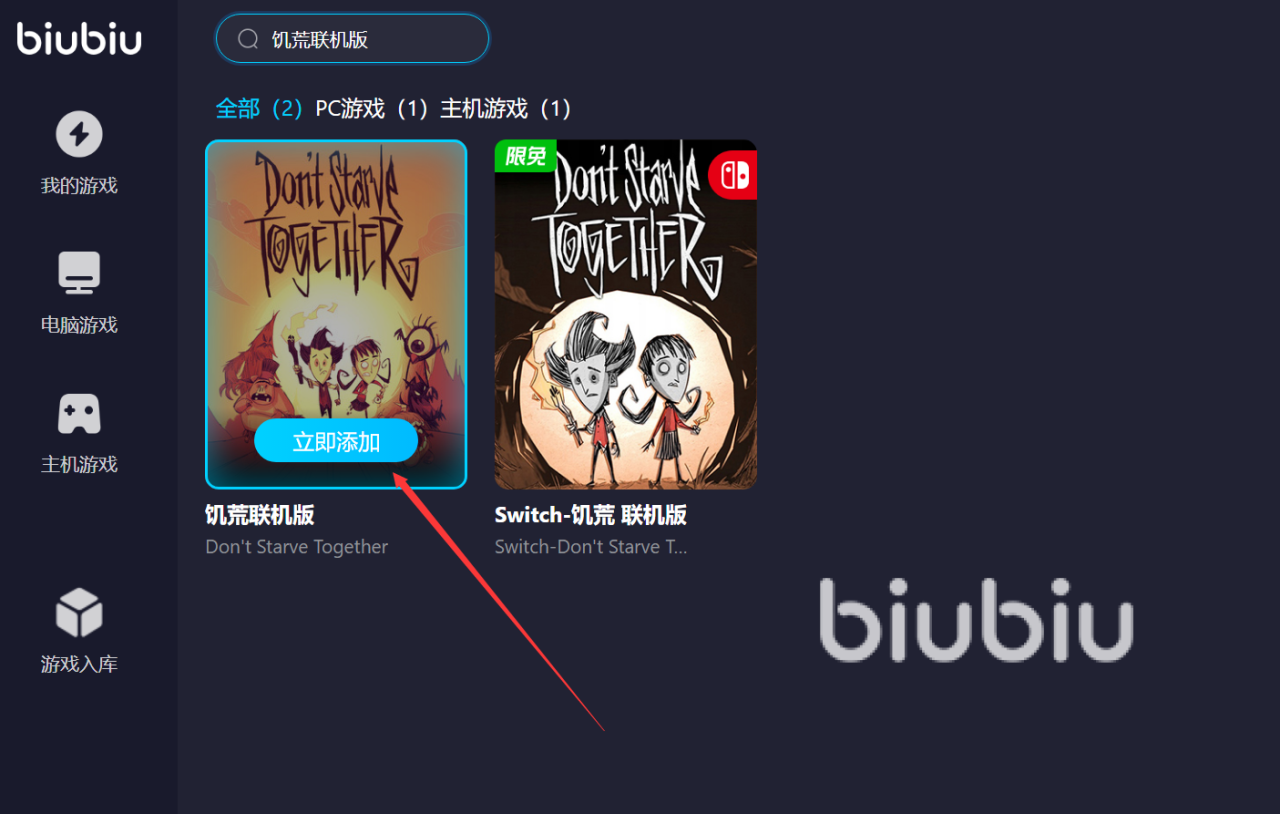 其实这款加速器操作也是非常简单的,在我们登录完成之后,搜索饥荒联机版,然后大家会看到两款游戏,一个是PC端游戏,一个是主机游戏,如果我们是用steam进行登录的话,就择PC版的游戏添加就可以了。如果对主机游戏有需求也可以进行添加。