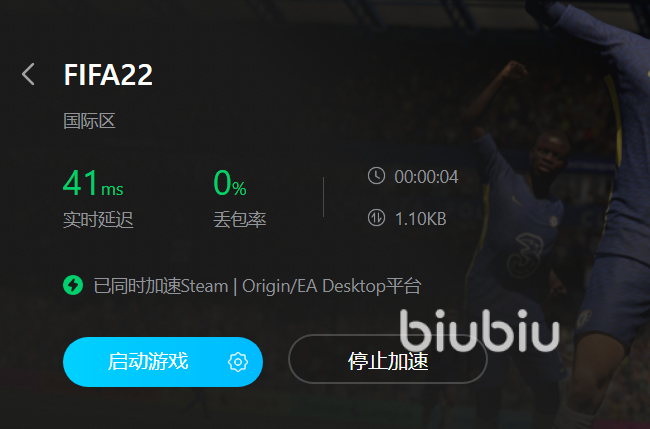 2023年04月14日 21:20 来源:不朽乎椰蛋树这款游戏是足球竞赛类型,属于FIFA系列的续作,它的忠实玩家大部分应该是足球爱好者,游戏中可以操控多位知名足球运动员来踢球,它是有官方正版授权的,游戏质量可以保证,今天就围绕fifa22生涯模式闪退怎么办这个问题做下介绍,这也是困扰众多玩家的一个问题,闪退这类问题大部分都是网络不稳定导致的,或者电脑配置太低,小编打算推荐一款biubiu加速器给大家,可以有效稳定网络环境。