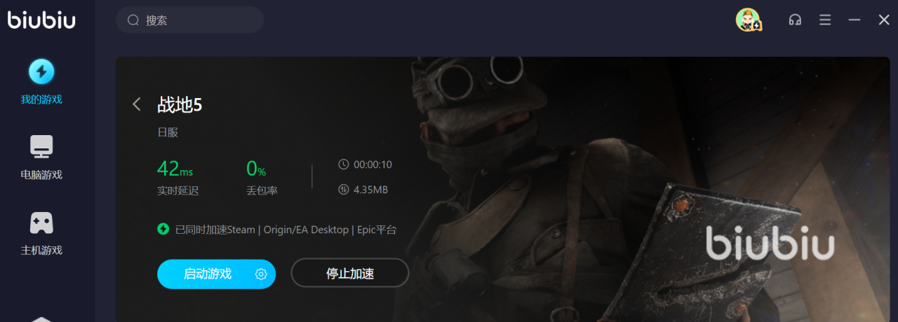 2023年04月14日 22:35 来源:水晶梓派拉斯特8想必很多的玩家都曾幻想过在战场上进行一场刺激的战斗,但是在现实中却很难实现这种愿望,但是在游戏内就不一样了,玩家不仅可以在站场上选择不同兵种去进行战斗还k,但是有些玩家发现在游玩战地5突然卡住然后闪退是什么原因呢,想必有些玩家不知道因为战地5游戏采用了寒霜引擎,把游戏内的动画环境的破坏、包括光照、地图和音效提升到一个新的高度,所以对网速的要求比较高,需要在加速器的帮助下才可以顺利的体验,所以小编今天给大家推荐一款名为biubiu的加速器给大家,操作简洁,实用性也是很强的哦。