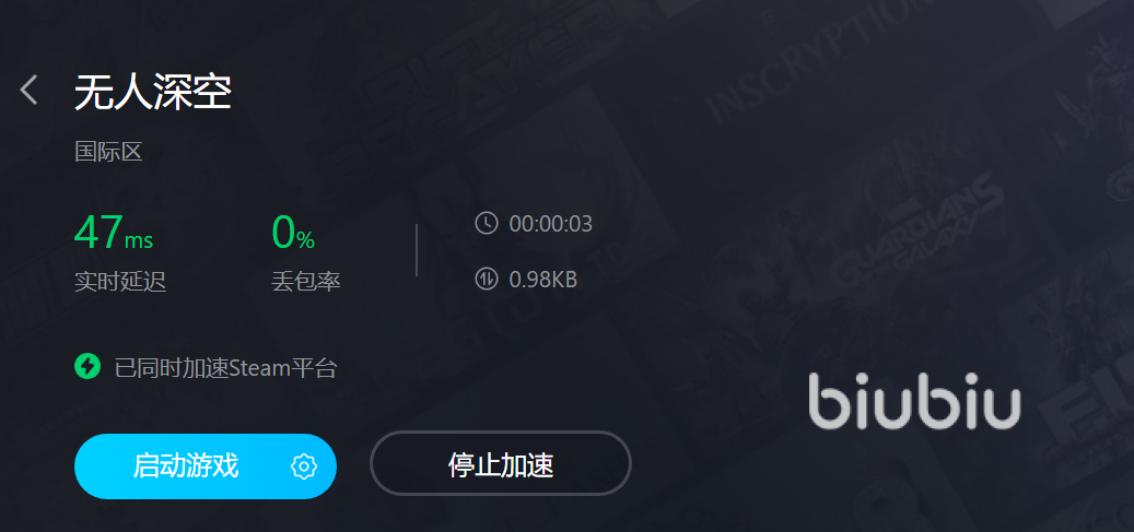 其实这款加速器也非常的简单,在我们进行游戏之前,先打开这款加速器,首先对网络环境进行一个优化,如游戏的过程中如会很少出现卡顿的问题了。我们在软件上搜索无人深空就可以定位到这款游戏之后,再通过加速可以看到一个实时更新的加速效果页面,当然,在我们游戏结束之后,点击停止加速整个的游戏加速过程。