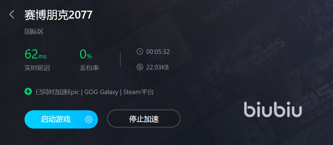 2023年04月14日 22:27 来源:箭雨宇铁甲暴龙赛博朋克2077这款游戏里面注入了非常多的未来科技,以第一人称为视角进行游戏。赛博朋克2077打开地图卡顿什么原因?因为这款游戏占用的内存还是比较大的,需要比较优质的网络来提供支持。使用biubiu加速器就拥有非常强大的网络加速功能,大家跟随小编来对这款加速平台了解一下吧。
