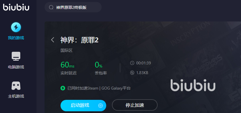 以上就是神界原罪2终极版闪退怎么办的方法,玩游戏开加速器随手养成一个好的习惯,中所周围高延迟游戏和低延迟游戏简直就是两款,要是之前一直就没用过加速器的话,就快去感受一下biubiu加速器。