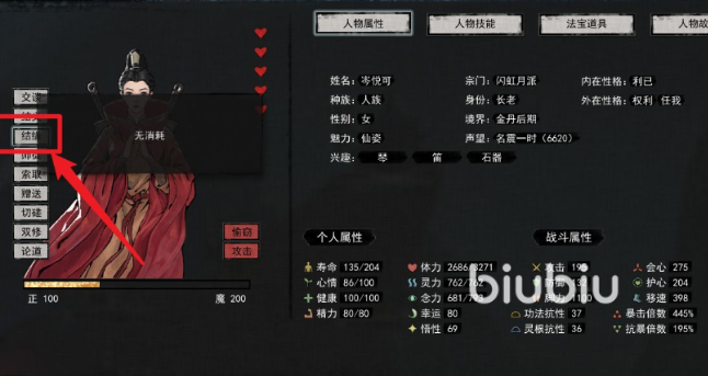 在成功之后就会有子嗣出生,玩家可以通关人物属性的关系途中查到她的子女是谁,玩家也算是大功告成了。其实还是比较有趣的一个系统,其实夫妻一起修炼加的属性还挺多。这个玩法的灵感应该是来自《神雕侠侣》这部作品,古墓派功法《玉女心经》的“玉女素心剑”练到最后一层需要男女双人相互帮助下练功,如今这种设计出现在《鬼谷八荒》中,可以看出武侠和仙侠其实很多地方都是相通的。