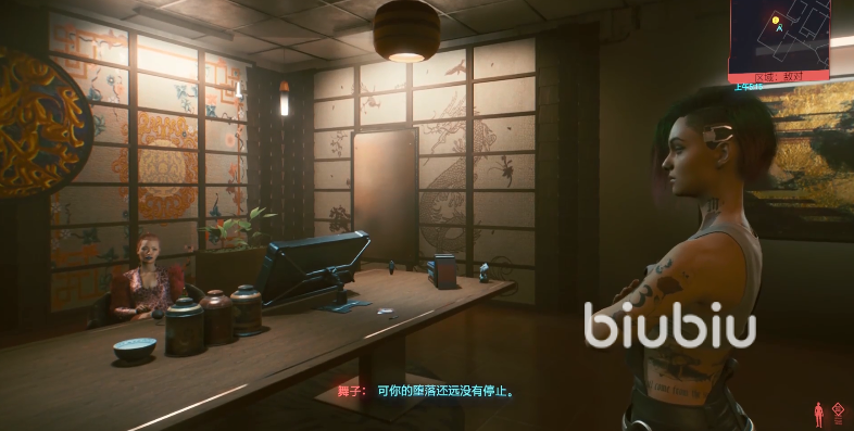 终章就是金字塔之歌,其实没什么实质内容无非就是和主角一起去潜水,自己的心情也最终释怀,觉得夜之城就是归宿也不错,上岸之后天色已晚你会和她住一晚,对方会给你做饮料,然后还会穿着泳装邀请你陪她坐会儿,一段对白之后就没有了,玩家也成为了该角色心目中最重要的人。遗憾的是,在后续的主线之中玩家不会将与她继续一起行动,如果你真想在大部分情节中获得队友的帮助,还是对竹村兄弟好一点吧,不然的话你只能孤身一人前往荒坂总部了。
