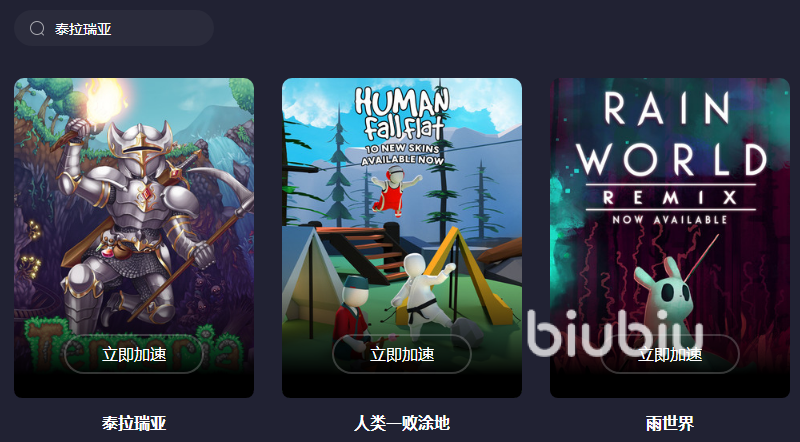 2023年04月17日 17:22 来源:影遁大卡卡特罗泰拉瑞亚是一款沙盒玩法的像素游戏,里面也是有很多经典的元素带给大家,今天小编就和大家说说steam泰拉瑞亚闪退要开加速器吗,游戏本身对于大家的网络配置要求虽然不高,但是很多朋友也是有存在卡顿的情况,其实主要还是因为其服务器是海外,而大家的网络节点传输的时候,经常会造成拥堵,故而会有延迟和闪退的问题,为此建议大家可以去选用biubiu加速器来帮助自己去解决这个难题。