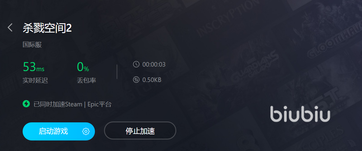 杀戮空间2支持多名玩家同时打怪也支持十余名玩家进行在线对抗,这种灵活的对战模式需要非常极致的网络才能有非常好的体验。如果我们的网速较低,非常有可能造成游戏界面掉帧,甚至被无情卡掉的情况。大家可以使用小编为大家推荐的这款biu biu加速器,他能将我们的网络更加优质的倾向于正在进行的游戏中。
