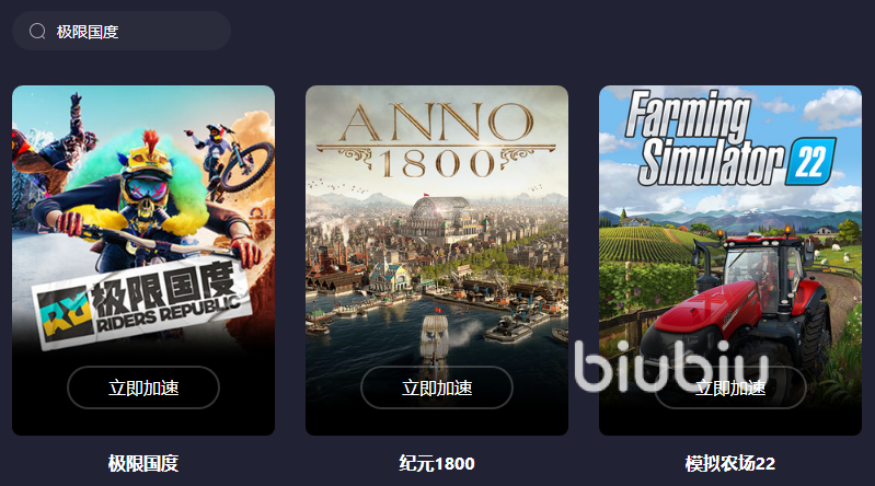 小编为大家推荐它,主要就是它能为大家提供便捷的使用方式,随开随用,不想用的时候,点击停止加速就可以,除了能为该游戏进行加速以外,还有大量的PC以及主机游戏用户也能去选择,涵盖的区服种类也是十分丰富,市面上大部分热门游戏,小伙伴们都能在这里见到,此外小编也是把它的官方下载渠道留在了上面,点击就能去快速的安装,在注册登陆以后,直接去搜索极限国度,就能其开启加速服务了。