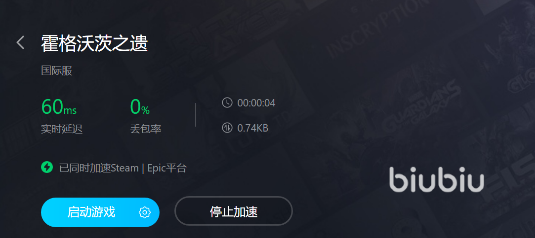 进入到这款UI风格极其简单的加速器之后,直接搜索霍格沃兹之遗,从而出现了对应的这款游戏。之后,我们通过将这款游戏进行加速,可以发现网络延迟变低了,而且像其他的数据我们也可以清晰看到,比如我们整个的加速时长和上传速率,丢包率等等。