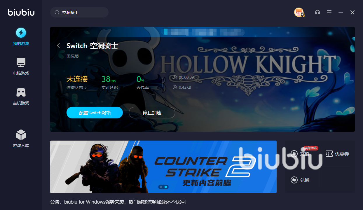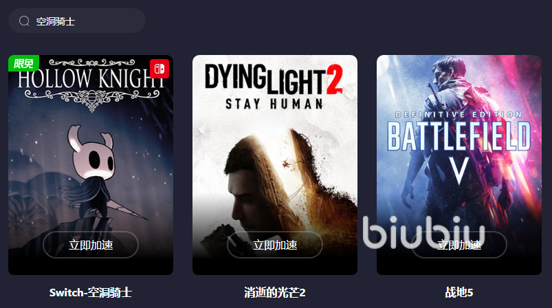 可能会有玩家好奇,为什么推荐的不能是其他加速工具,小编也是有去对比过的,发现很多加速工具的入手门槛高,上来就要开会员才能去继续使用,或者免费体验的时间太短,只有几分钟,根本就看不出来到底适合与否,但是它就不一样了,不仅有着新用户的免费试用,像主机游戏以及PC游戏也是有部分限免加速的,就比如大家所喜爱的空洞骑士恰好就在其中,所以玩家可以在限免期间内开启游戏加速。