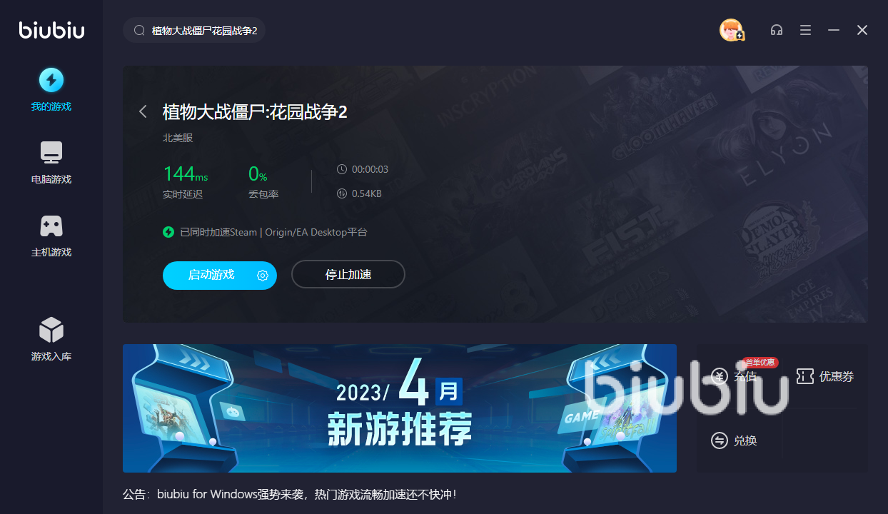 至于植物大战僵尸花园战争2卡顿怎么解决,小编已经在文中详细给到了大家具体的方案,那就是去通过biubiu加速器来帮助自己去优化网络,如果大家觉得这样的方法有效果,值得去尝试一番的话,那么就去下载试试吧。