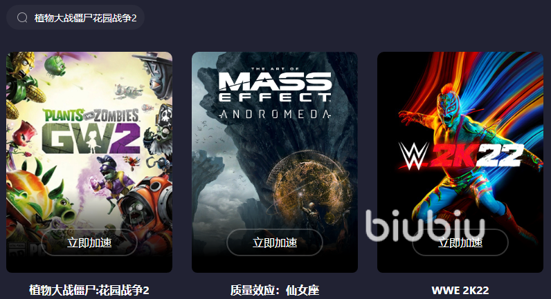 朋友们可能之前也有尝试过一些其他的加速器,但是发现它们的效果非常一般,那是因为该游戏除了亚服以外,还有很多海外服,小伙伴们如果体验的是它们,那么一般的加速器是很难起到作用的,并且专门针对游戏环境进行优化的加速工具少之又少,自然也就没有效果了,而biubiu加速器不仅专门针对游戏,同时涵盖的范围还非常的广,像市面上常见的主机以及PC游戏,玩家都能够在此见到,同时通过游戏库直接去搜索游戏名,小伙伴们就能找到想要去加速的游戏,点击开启加速就能享受它为大家搭建的加速通道了哦。