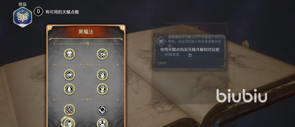 我们首先来打开天赋菜单,游戏中的天赋是没有办法全部学习的,我们升级到40级,也仅仅只有36个天赋点。