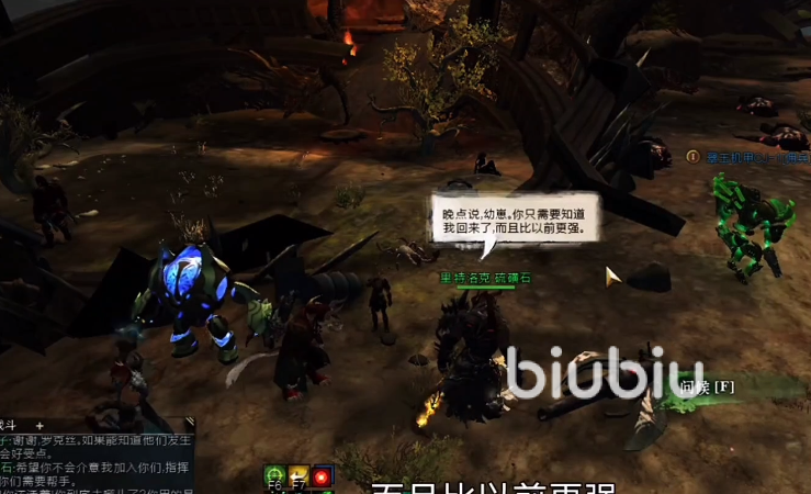 之后会出现机制,点击现实裂口后,场地内会挂起强烈的大风,玩家会被吹到空中,使用滑翔翼一直在空中进行盘旋,之后落回底面,继续对boss进行攻击, boss会再次召唤一只精英怪:疫藤拉伯罕·伊尔之子。每次召唤出来的精英boss都会使用近战,对玩家进行追击,所以可以拉扯着,放风筝进行击杀。然后再次激活裂口。当击败了被召唤出来的疫藤弗加尔,玩家会再次升到空中,反复几次后,然后会传送到和盟友进行交谈。