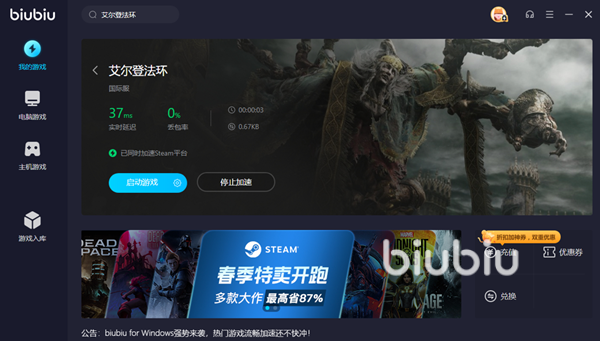 在游戏中我们将化身成为余烬追寻黄金树破碎的真相并且为大陆带来久违的和平,在冒险的过程中不仅是单打独斗,遇到打不过去的boss还可以摇人一起作战,当然也会带有入侵PVP的玩法,大家在一起切磋武艺,增进实力。游戏的可玩性自然不用多说,线上要素的加入更是扩展了游戏的玩法。但是网络环境不稳定出现卡顿、掉帧或者是闪退那就让人太头疼了,下面小编就来为大家分享一下如何使用biubiu来解决的方法。
