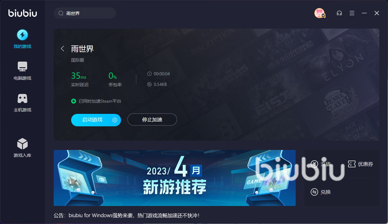 2023年04月19日 14:51 来源:万火于大岩蛇如果大家喜欢体验生存冒险玩法的游戏,那么一定对雨世界也是不会陌生了,今天小编就和大家介绍下雨世界闪退要开加速器吗,在游戏的体验中,小伙伴们经常会遇到有网络速度突然波动的情况,这其实都是卡顿和延迟导致的,并且为了能更好地解决这个困难,小编建议大家可以去通过biubiu加速器来帮助自己去对网络进行一个优化,因为其功能上非常的突出,各方面的表现也是不俗,下面就一起来看下,它具体都有哪些方面的优势吧。