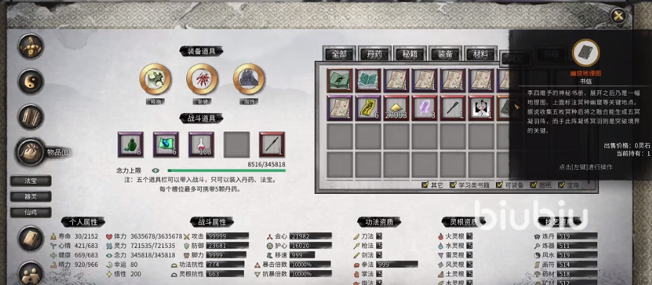 当达到悟道后期,需要突破的时候,选择跳过本月,玩家就会遇到一个npc,也是我们的老熟人李四,会给一本幽窟地理图,地图上面标记了5个重要的地点,我们根据上面的提示,前往这五个地点,收集齐每个地点所产出的材料。大家可以放心,游戏内都是有各种提示的,其中有一个任务需要在赤幽州完成。