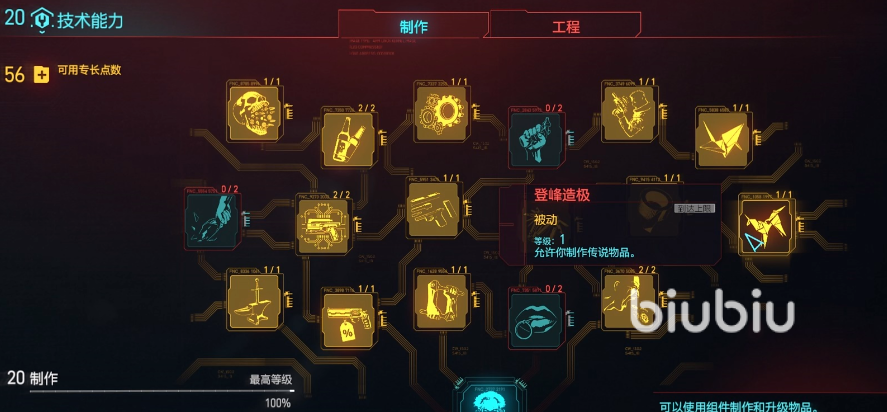 之后需要去制作里面点出“登峰造极”,才可以制作传说武器,剩下的1,2点加到“反应”即可。