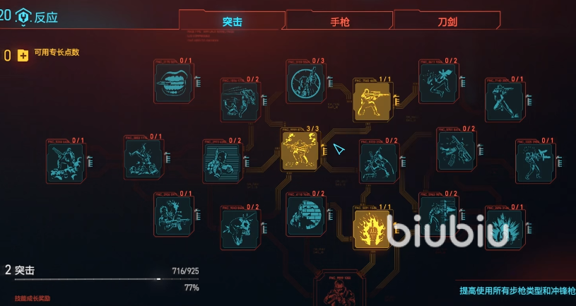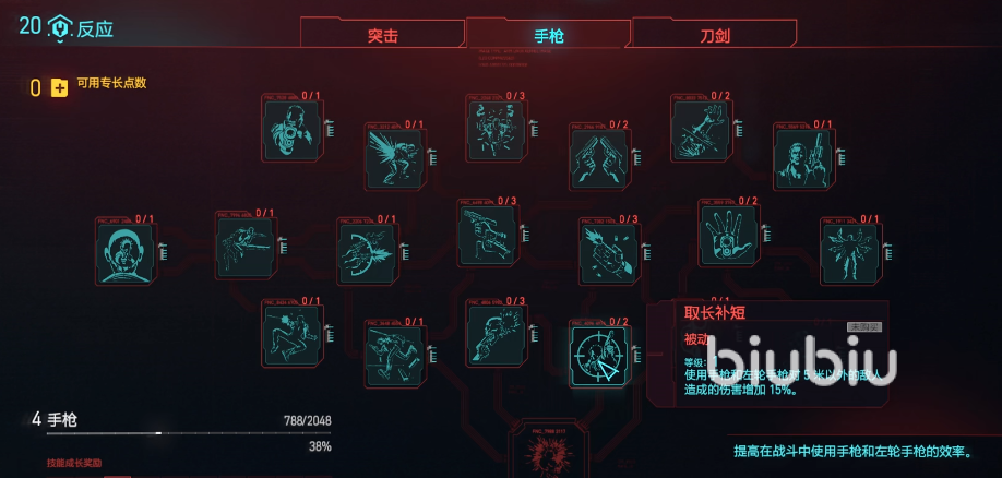 手枪流:前面的思路和武器流是一样的,只是到了专精选择手枪即可。