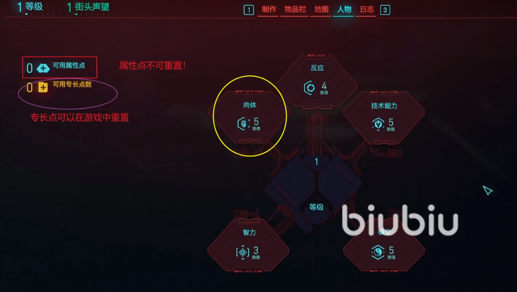 首先我们要了解《赛博朋克2077》的属性点不可以重置且游戏内的等级最高50级,所有玩家总共有71点,分别是创建游戏初始的22个属性点和后续等级提升所获得的49个属性点。如果想要精通一种流派,那么20级之后要注意保留一定数量的属性点,如果已经确定想玩的流派,就不需要刻意保留点数。一般情况下,肉体点8点以下,甚至点6点,就够用了。接下来就细说一下5个流派的加点情况吧。