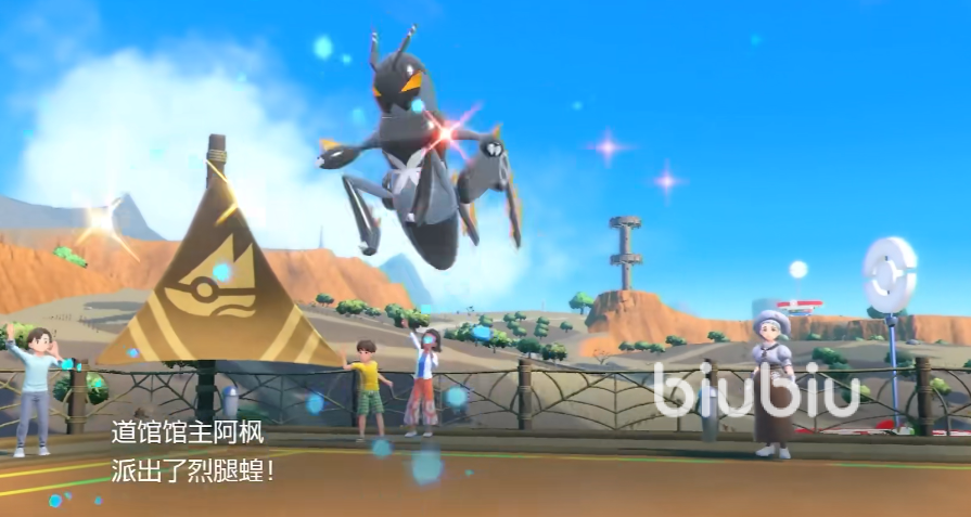 先前往虫系道馆,和馆主阿枫战斗,她会先后派出5只宝可梦进行战斗,首先出场的是烈腿蝗,烈腿蝗会使用猛扑,下压踢等方式进行攻击,可以适当的使用药水和活力碎片辅助宝可梦进行战斗。击败后,会出来一个球状的宝可梦:佛烈托斯,之后会召唤出赫拉克罗斯,一个蓝色的甲壳虫宝可梦,然后是操陷蛛,最后会召唤出一只圈圈熊,并且馆主阿枫会对其进行强化。
