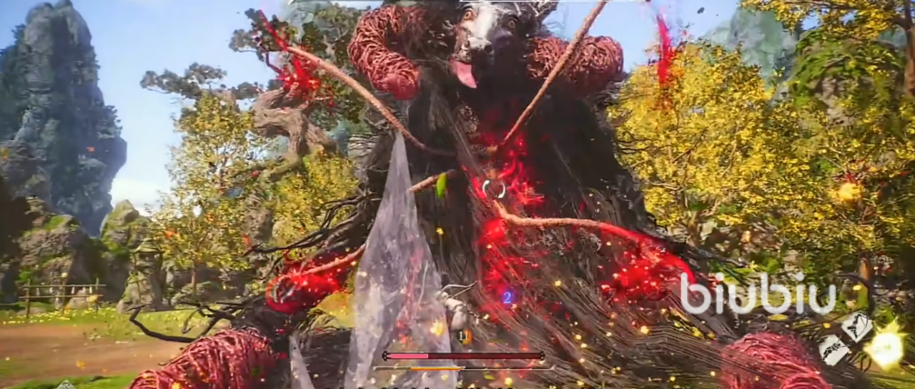 第二种红光必杀:獓㧢抬头伸出触角攻击,我们需要在触角接触我们的一瞬间使用化解,弹反成功后,我们继续使用之前的套路削减boss血量,这样就可以轻松打败boss了。
