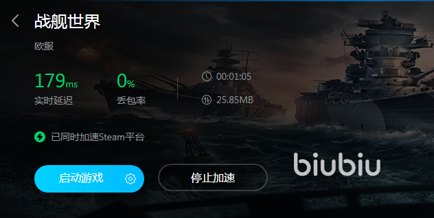 如果大家玩的是steam版的战舰世界,那么没有加速软件是万万不行的。在普通的网络环境当中很难加载steam页面,更不要说登录游戏了。biubiu加速器的多条线路可以成功连接上服务器,让小伙伴顺利登录。如果玩的是战舰世界国服就更好了,目前软件正在限免战舰世界国服,哪怕没有会员大家也可以免费加速来玩。