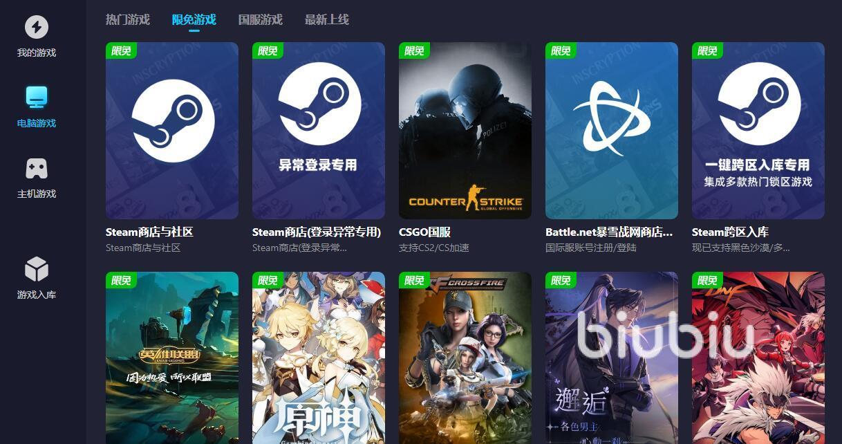 除此之外就是平台内的限免活动了,此活动非常推荐大家积极参与,游戏库当中只要拥有该标识的游戏 ,都可以让玩家免费的进行加速体验。只要在活动期间,玩家可以去找到更多感兴趣的游戏来开启网络优化。