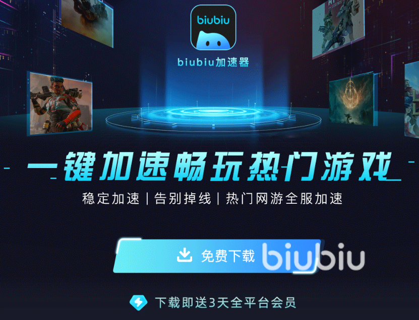 Biubiu现在不仅有新用户福利,还会定期开展游戏限免活动,为玩家提供免费加速功能,畅玩各大网游,大家可以持续关注。另外,新用户注册3天还可以享受全平台免费的超大福利呢。