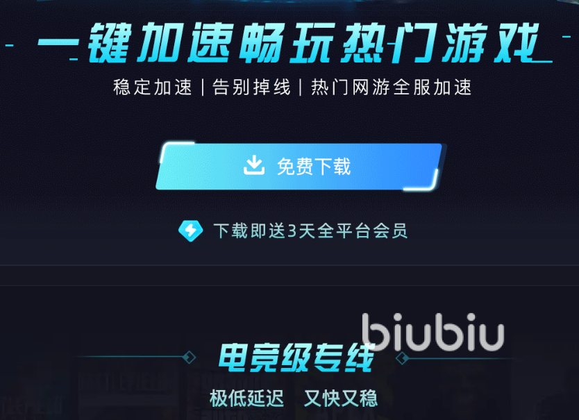 这里为各位推荐biubiu加速器,可以完美优化游戏的网络环境,并且也开启了加速平台的周免福利,时间与游戏的免费游玩期限是一致的,会一直持续到2023年4月26日。开始限免加速之后可以玩的更加顺畅,杜绝掉帧掉线的情况出现,实在是太棒了。另外,如果大家是新用户,还可以享受3天全平台免费加速的福利哦!