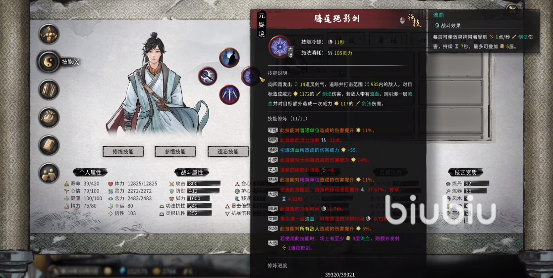 在技能安排上面,左键选择月影剑,右键选择绝影是比较好的搭配,前者需要的属性词条是,在命中敌人的时候叠加流血伤害以及层数,或者是减少冷却或者增伤都可以。后者需要的属性首推就是引爆流血后可以减少cd,其次增伤或者加速都非常不错。
