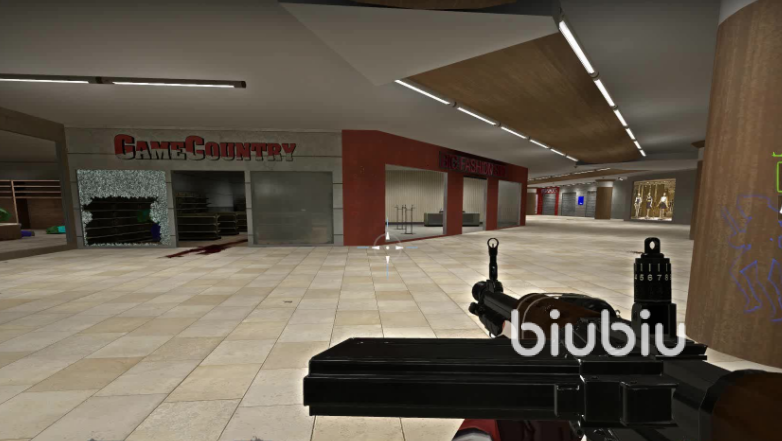 在游戏开始前的过场动画里,几个角色提到想要达到撤离点,必须成功穿过商场才可以。在出安全屋之前,可以透过门框看到外面的零散僵尸,可以先开枪打掉,然后开门出去就是商场一楼,出门的时候会有几只僵尸,打死就行。出门直接往右再往左,就能看到一个手扶电梯,顺着路上去就是二楼。