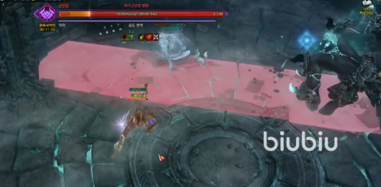 我们可以在这个时候疯狂的输出巴尔坦,但是需要注意的是,千万不要打到130管血以下,因为到了这个阶段,它会立刻释放秒杀技能,在此之前我们需要保证全队都吃到蓝色的球。BOSS的全屏秒杀用会有两段攻击,第一段不会秒杀,但是会消耗掉我们的蓝球BUFF(蓝球BUFF可以在状态栏中看到),所以我们必须要躲掉第一次的攻击。