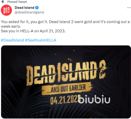 根据官方的推特信息,我们了解到原本死亡岛2是定在4月28日进行发售的。但是死亡岛2的官方,竟然选择提前了一个星期进行发售,也就是4月21日,让玩家能提前进行体验。当然这次反向跳票事件,对于死亡岛迷们来说可以是百利而无一害。