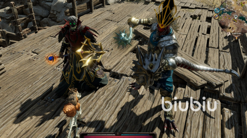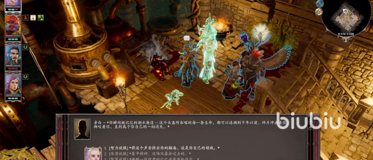 因为战斗场景内充斥着好几个敌人,而我们又在地图中间,处于被包围的趋势,所以我们可以决定下战斗的策略,可以集火逐个击破,亦或是4个角色分散进行攻击,需要注意的是怪物会使用火属性攻击,在条件允许下我们可以使用火焰祝能免疫一下火属性的攻。小编这里还是推荐大家开始行动时,可以使用换位或者瞬移等技能,先将角色移动到安全的区域,如果4个角色都站在原地的话,很容易被敌人一个AOE技能所波及,这样就得不偿失了,所以最好还是先将散落在地图周围的小怪清理一下,最后再和被污染的恐怖进行战斗,这样我们很快就可以结束战斗了。