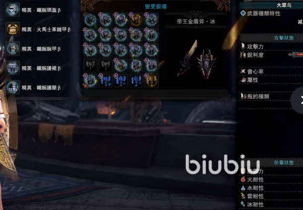 但是我们需要注意一点的是,外观变化和武器变化有点不同,因为外观的模型会比较复杂一点,它大概分成两个体系,分为独立模型和共用模型。比如月神金盾,它和其他的盾斧有着明显的区别,这就是独立的模型。而像帝王金盾斧·冰,这个武器还是能看出它的外观有着盾牌的底子,这就是共用模型的盾斧。