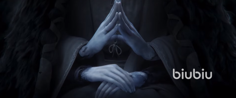 这里指的其实就是菈妮,她是该作的两大女主之一,你可以很明显的看到她拥有两张脸和四只手,一身蓝色的皮肤和非常漂亮的面容,另外她的一只眼睛也是闭着的,和梅琳娜成相反的位置,代表了该作的另一大结局,玩家如果不想成为艾尔登王可以选择做该角色的支线任务为其戴上戒指,与其携手离开交界地创造新世界。