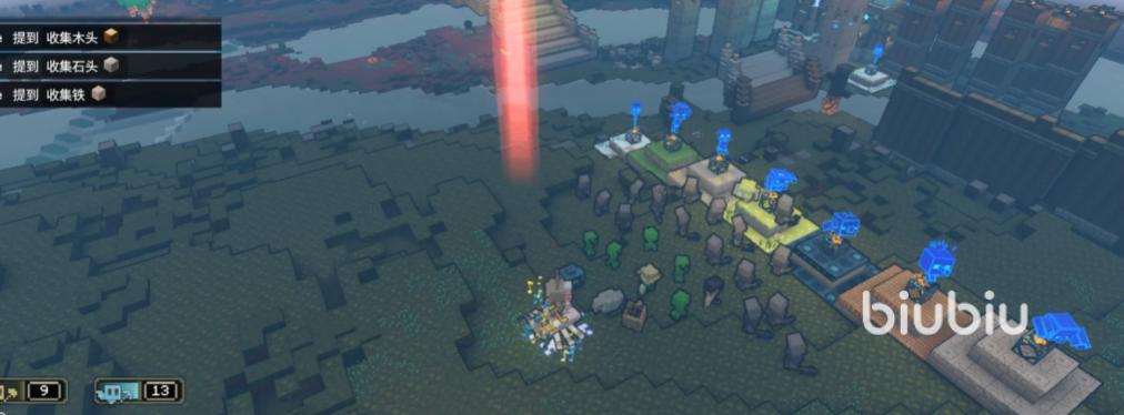 如果我们在游戏内缺资源了,比如木材,可以在树林那里放置一个箱子,它就会稳定的帮我们采集木材。那肯定会有一些小伙伴想偷懒,如果我们想白嫖好友的素材,但是又不想打开麦克风交流怎么办?我们可以在放置需求的素材时按键盘的“1”,这样左边的公屏上就会出现:xxx提到收集xx,和队友ping武器装备、建筑还有各种信号都是一种操作方法。