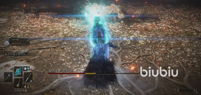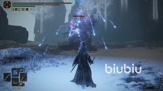 而装备上你可以做菈妮支线,顺便去塔里拿一套雪魔女套装,还挺好看的建议是用女号来穿戴,另外做完会给暗月大剑,这把剑有智力加成法师也能用的近战神器,不过你会开启群星结局,但作为初见第一次打出Happy End应该没什么问题。在之后一手剑一手魔杖,开打直接招分身吃无限蓝药,上来先直接终极法术来一套血再厚也没用。