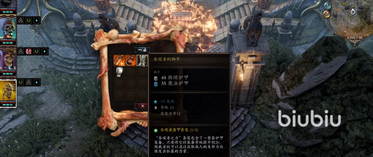 我们首先来到欢乐堡,可以在地牢的出口处找到一个钢箍箱,打开就可以获得吞噬者套装的手部位了。下面我们需要来到死神海岸的石园墓地,可以看到一个被火燃烧的宝箱,其实吞噬者的脚步并不在箱子里,我们只需要绕过这里,在死去的掘墓人尸体上就可以找到了。