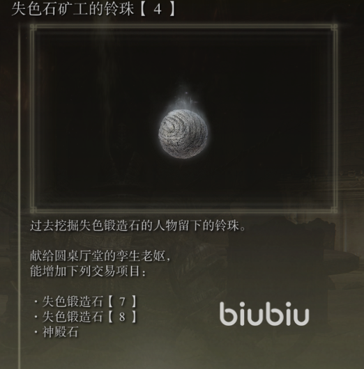 也不用害怕她们只是商人而已,你可以通过各地探索宝箱寻找矿工的铃珠献上,就能获得对应的强化道具购买权限,此外你还可以买一些其他装备,不过除了升级武器的石头之外大部分都比较鸡肋,在前期如果卢恩的数量比较紧张还是先拿来点出更高的人物属性吧。