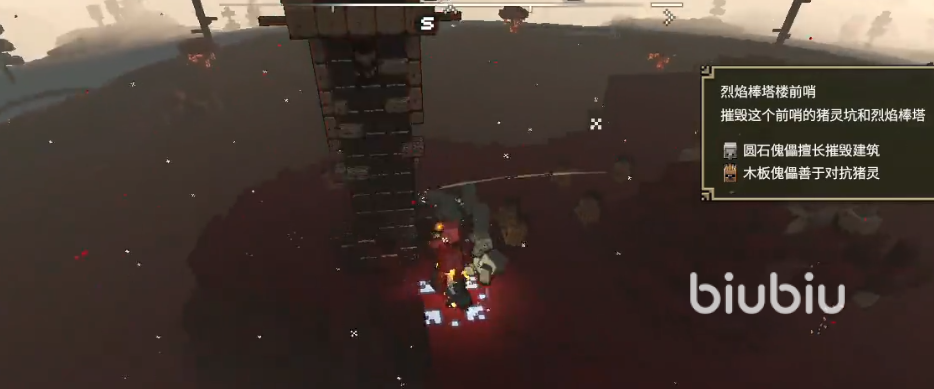 但是如何才能解锁这个生产器呢,我们需要按照游戏内的提示,完成摧毁猪灵前哨的任务,这样就可以解锁新的歌谣集,获得生产砂轮傀儡的必要材料:铁。