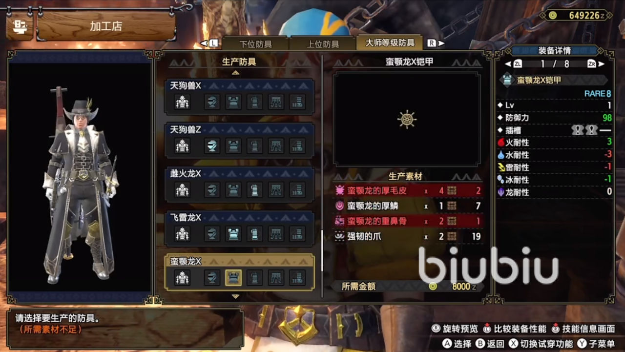 如果说觉得材料没那么多,可以先不换腿,一直使用妃蜘蛛也可以。这个阶段实在缺材料就回去打一下本体的任务,通过打怪什么的,集齐珠子以备后期做一下早气,射法这些东西。后面的根据自身的需要,再去打怪获取材料换掉腰,甲,胸,不想这么麻烦就从其他渠道点满防御方面的技能或者加点等,这样也能够通关的。不过武器不能含糊,还是要跟上节奏用材料升级,优先强化属性武器。