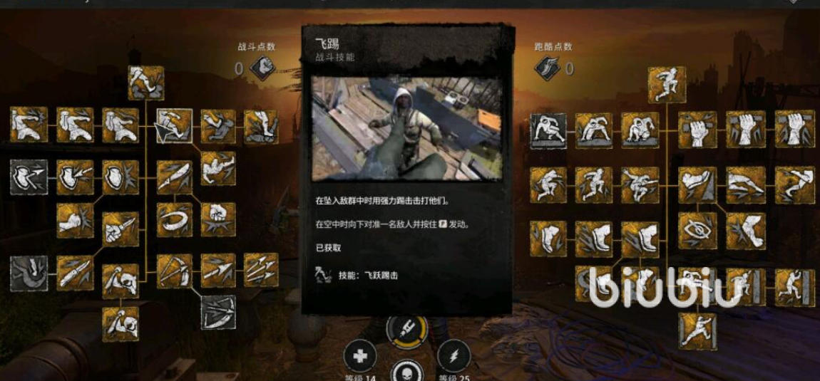 随后就是游戏中角色的天赋选择了,在消逝的光芒2中,技能学习方面主要是两个方面,一个是战斗技能方面的学习,另一个就是事关跑路的跑酷技能了。当我们在游戏中完成一定的指定动作之后,我们可以获取到对应类别的技能经验,比如说我们在屋顶上跳跃、奔跑,是可以获取到跑酷类型的经验,当经验获取到一定量之后大家就可以升级解锁对应的技能了。另外在屋顶跑酷时,网络波动的存在会影响到我们的操作,可以选择biubiu加速器来减少网络波动的出现,让我们更加顺畅的完成动作。