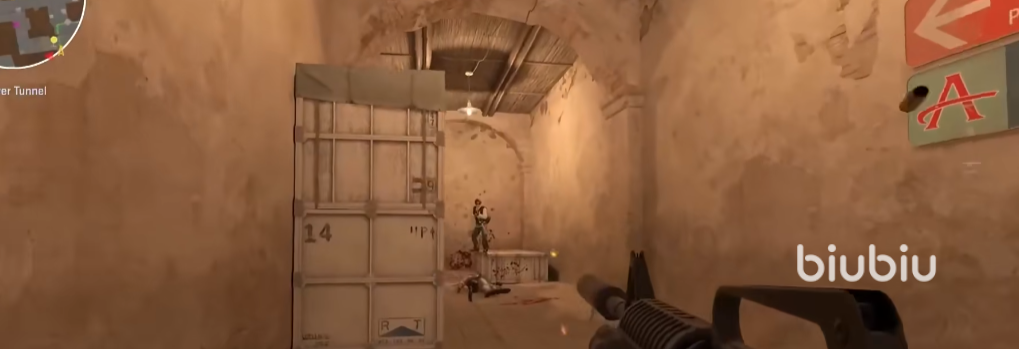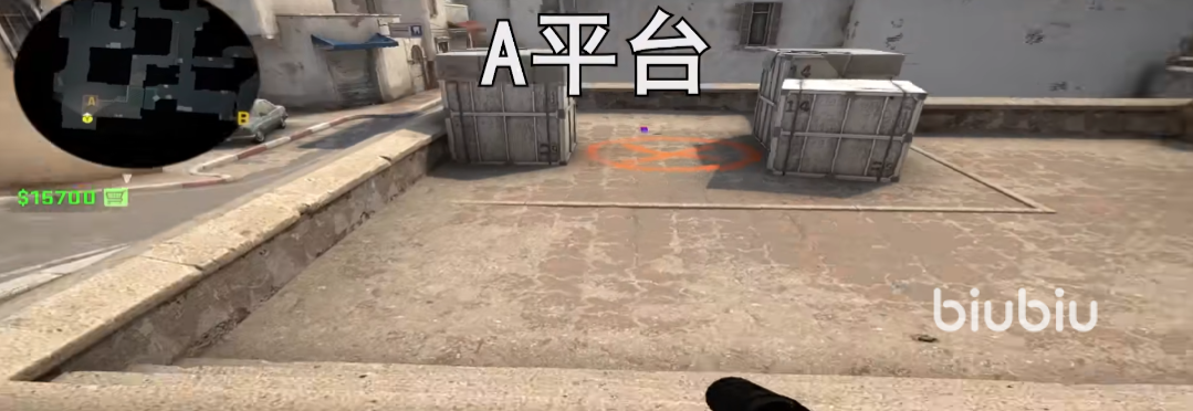 如果你玩的是CT,出生的地方叫做警家,我们可以看到右边有个箱子,叫警家大箱。三个堆在一起的箱子,叫混烟位。从左边出来往A走,斜坡有一堆箱子,叫A小双架位。头上的那条小路,叫A小道。放包的地方叫A平台,从斜坡下去,一条路都叫做A大,顺着一直走,就到了A门。在往里走上了斜坡就是匪家,再往前就是后花园。