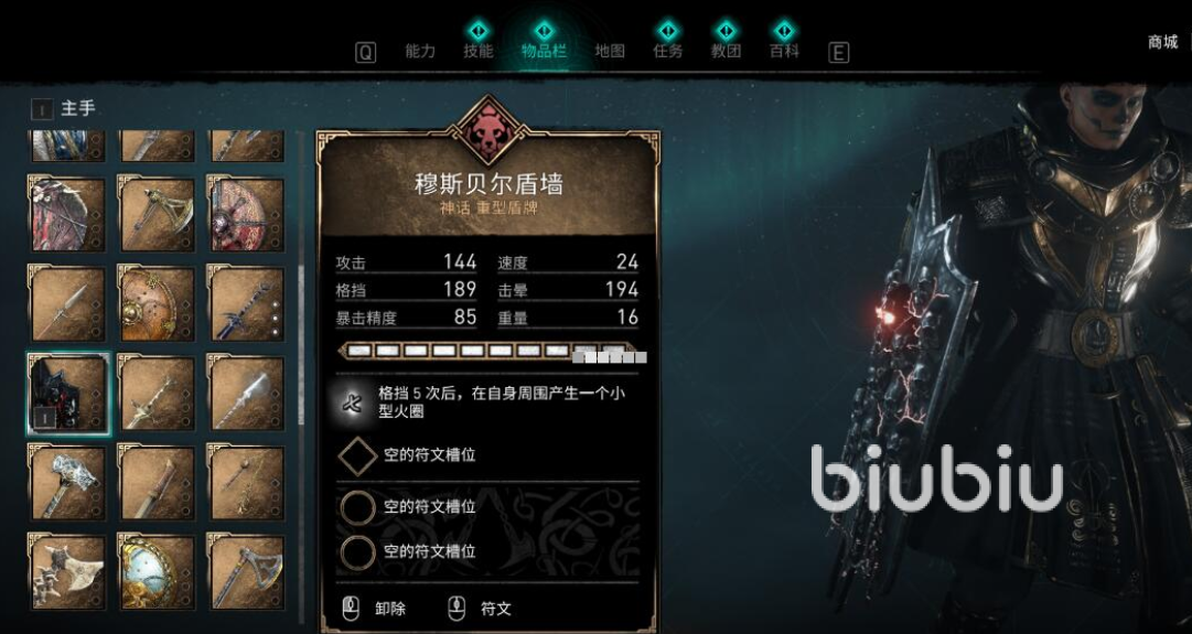 愿意花点小钱的朋友可以选择海拉套,效果还是蛮强的,所有部件都已经在内置商店上架了,玩家可以直接购买。目前有海拉诅咒头盔,自身的护甲值非常高,轻、重抗性数值也不错,闪避效果尚可,但是重量轻。苏鲁特之剑攻击还是挺高的,而且武器点燃的时候能够提升自身伤害,出暴击就会点燃武器,效果还是蛮好用的。穆斯贝尔盾牌属于重型防具,自带攻击的同时还有高格挡数值,每5次格挡成功之后会在周围产生一个小火圈,对战的实用性非常高。