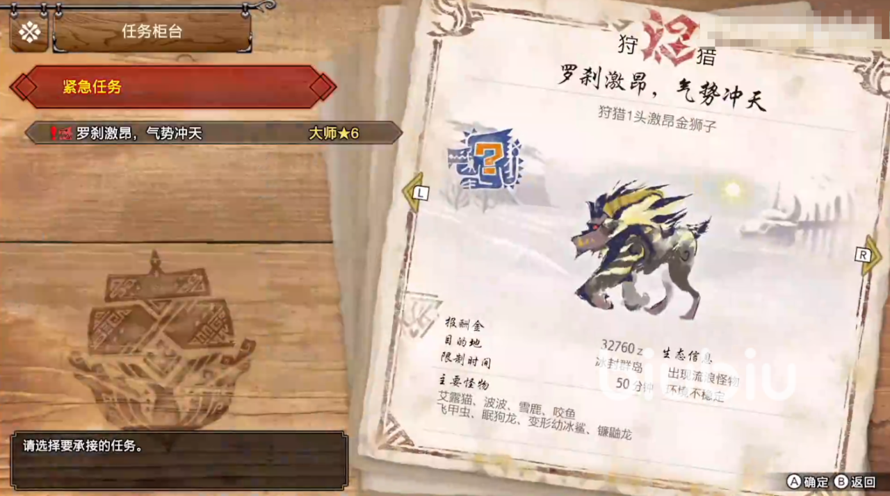 玩家的大师等级到50级就可以解锁这个任务,去找接待员琪切公主,就能领取这个委托,然后就调整配装去挑战啦。前往冰封群岛,在50分钟内的时间击败它才算完成哦。在遇到这种有限定时间的任务时,大家可以使用biubiu加速器,保证在任务过程中可以流畅体验,不用担心突然掉线。