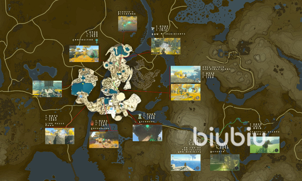 因为这一部作品当中,部分地图是跟荒野之息采用同一区域的,所以有部分爱好者们,根据推测,定位了一些浮岛的实际位置,当然不是全部,毕竟视频里面出现的就那么几个,不过整体数量还是比较多的。