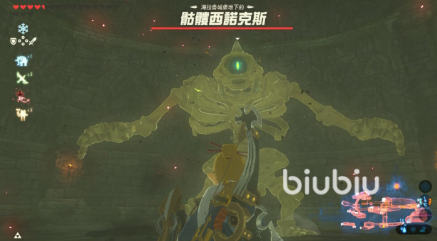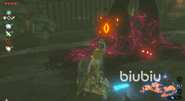 好不容易到监牢入口,会发现有个守护怪物,对于玩家来说,前期想战胜它还是要花一点时间的。不过好在本作增加了同伴相助功能,在很多神庙以及打怪的时候,都会有同伴陪伴着林克,并且还会赋予一个特殊能力,实在是非常厉害的NPC好友。