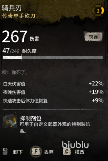 骑兵刃是送的物品,玩家上来就能用所以是新手期的大杀器,属性方面是固定的,因为毕竟是白送的一级就能拿,伤害有267点并且白天和晚上都有加成,另外自带轻击吸血可以说打小怪简直就是在玩“无双”啊,一刀个毫不夸张,但后面的话这个面板还是不够看的,当你中期刷到更好的就可以换掉了。